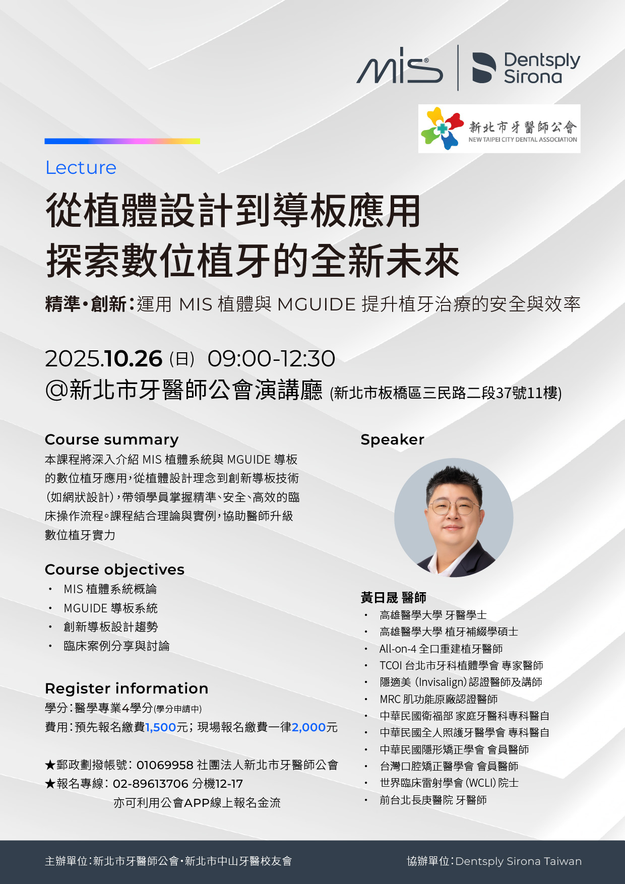 本課程將深入介紹MIS植牙系統與MGUIDE導板的數位植牙應用。從植體設計理念到創新導板技術(如網狀設計),帶領學員掌握精準、安全、高效的臨床操作流程。課程結合理論與實例,協助醫師升級數位植牙實力。